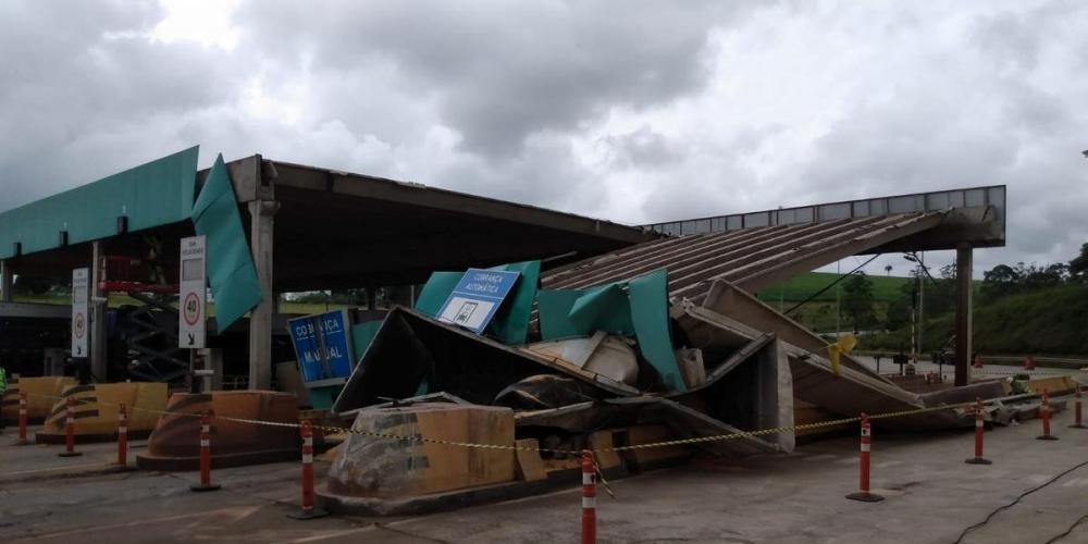 Motoristas relatam congestionamento na BR-040 onde carreta derrubou parte de estrutura de praça de pedágio
