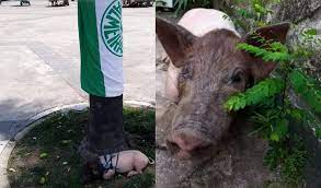 Porco amarrado em árvore com bandeira do Palmeiras é resgatado por R$ 250