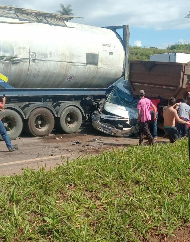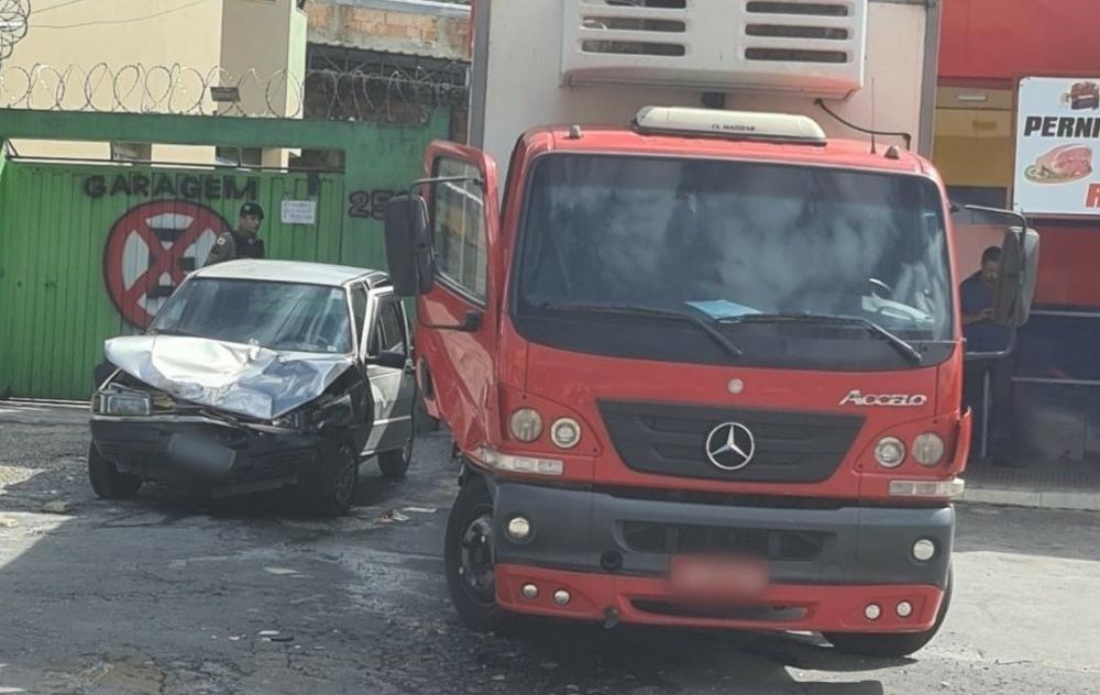 Acidente entre carro e carreta deixa mulher grávida ferida e homem com fraturas, em Contagem