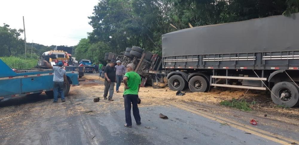 Motorista de carreta morre após veículo tombar e cabine ser esmagada na BR-381, em Santa Luzia
