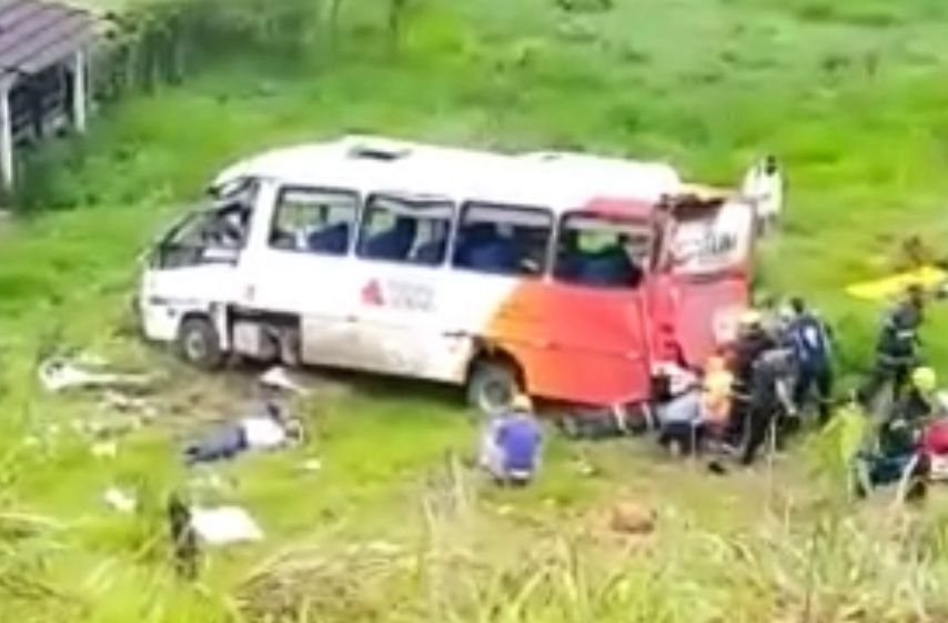 Micro-ônibus que transportava 15 pacientes capota na BR-267, na Zona da Mata