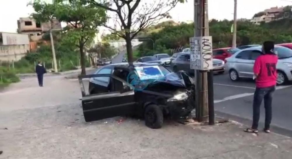 Três pessoas ficam feridas após carro bater em poste na região da Pampulha, em BH