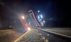 Ônibus que fazia fretamento para a Buser tomba na BR-040 em Barbacena, Minas Gerais