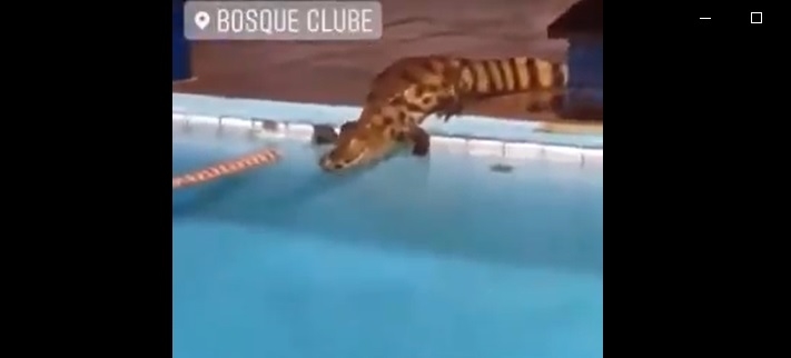 Jacaré é flagrado entrando em piscina de clube e assusta funcionários: veja vídeo