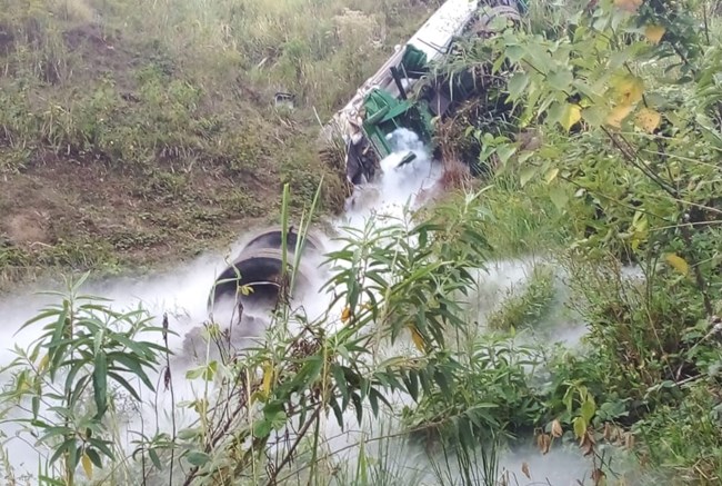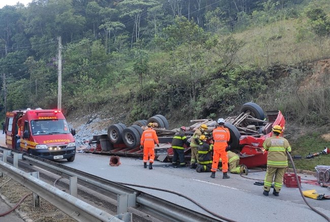 Carreta com oxigênio cai em ribanceira na BR-116, na região da Zona da Mata