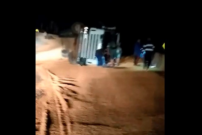 Vídeo: carreta com carga de milho tomba e interdita pista da BR-040, em Itabirito