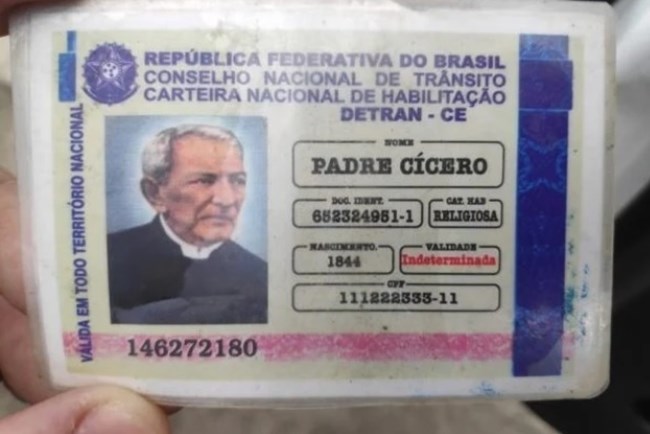 Homem é parado em blitz e apresenta carteira de motorista com fotos de Padre Cícero e Frei Damião