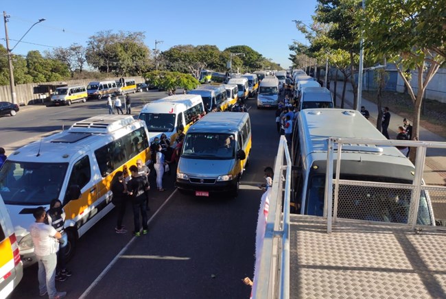 Motoristas de transporte escolar de Minas fazem carreata em protesto ao governo do Estado