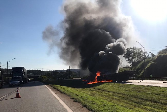 Carro bate de frente com caminhão e motorista morre carbonizado na Grande BH