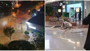 Parte do teto do BH Shopping desaba durante mais um temporal em Belo Horizonte