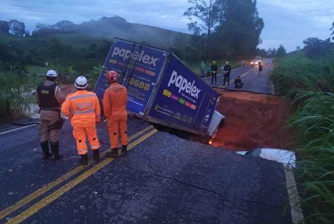 Cratera engole dois caminhões e dois carros na Zona da Mata; uma pessoa está desaparecida