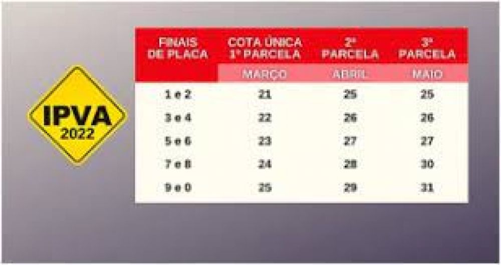 Motoristas podem pagar o imposto em taxa única, entre os dias 21 e 25 de março, conforme a placa, e garantir desconto de 3%. Caso a opção seja pelo pagamento dividido em até três vezes, as parcelas vencerão em março, abril e maio. Nesse caso, não cabe o desconto.