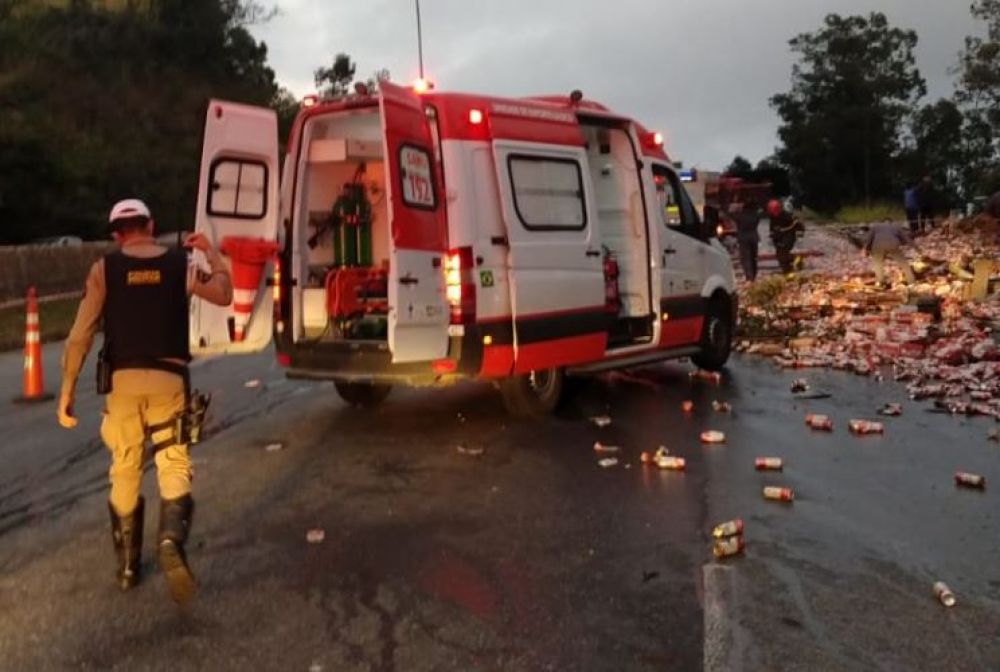 Uma carreta carregada com cerveja desgovernada atingiu um Gol próximo à curva do Ponteio, na BR-356, região Centro-Sul de Belo Horizonte, na manhã desta quarta-feira. O condutor do veículo de passeio, um supervisor de segurança que tinha acabado de sair do serviço, morreu no local. A carga de cerveja ficou espalhada pela pista. As informações são do Corpo de Bombeiros.